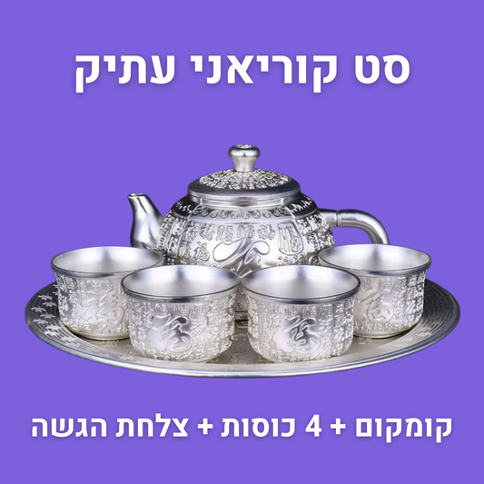 סט קוריאני: קומקום + 4 כוסות + צלחת הגשה